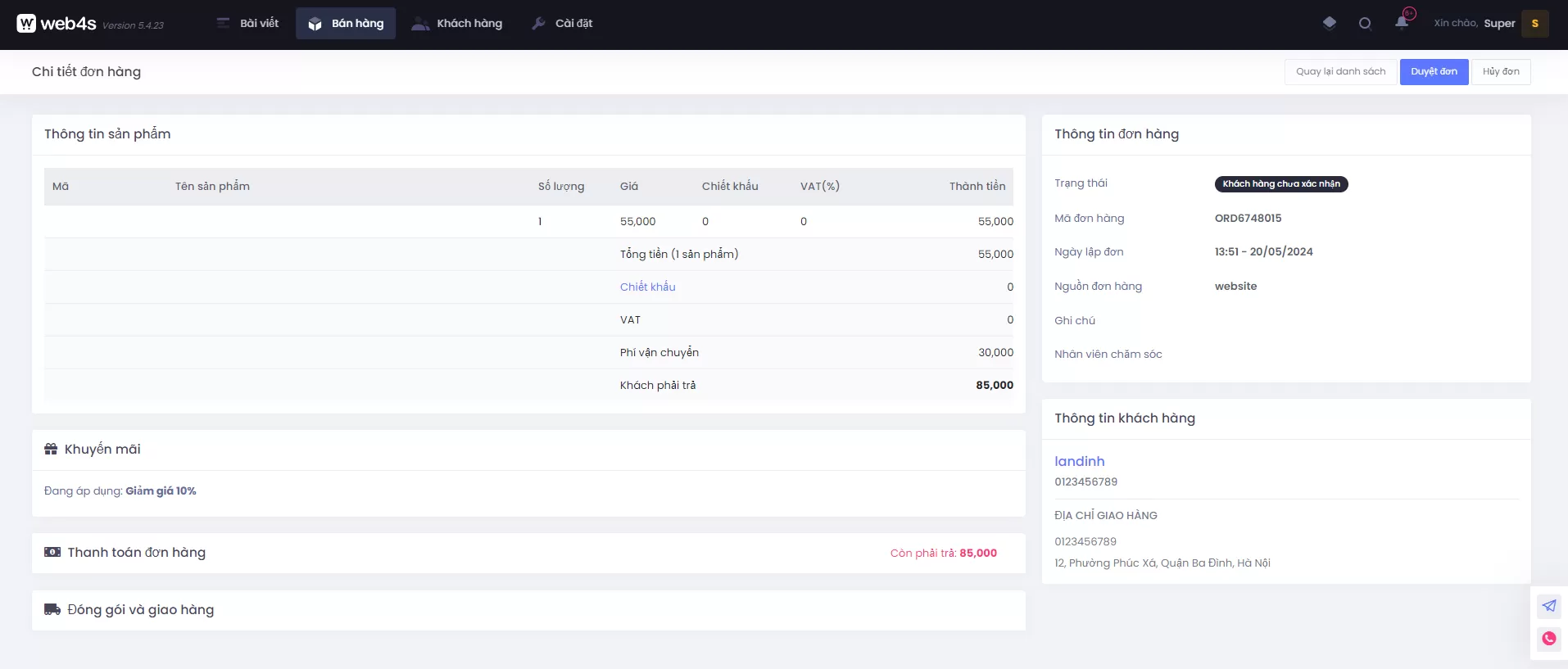 - Giao diện chi tiết đơn hàng