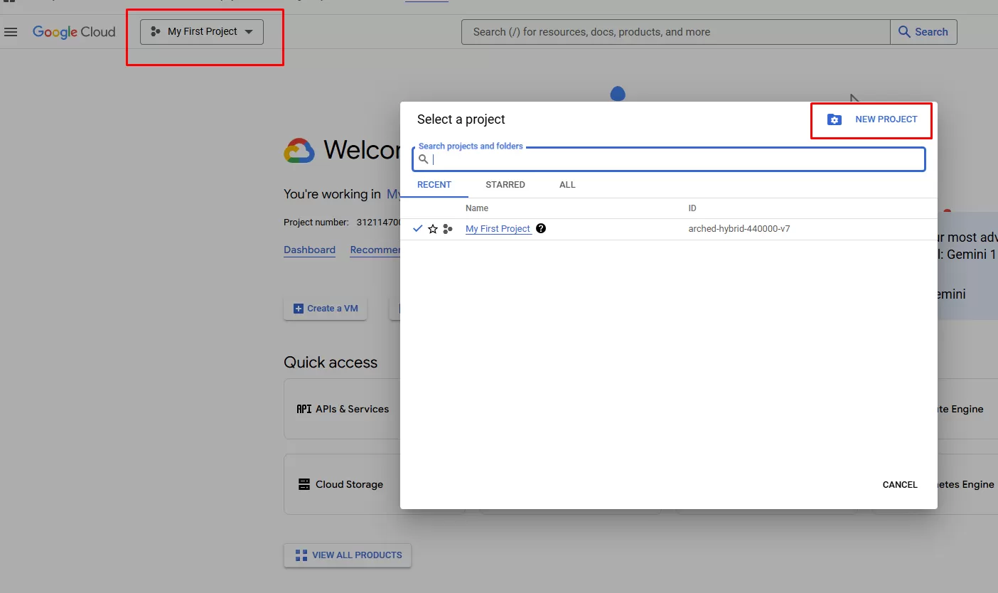 Bước 2: Tạo project: Click NEW PROJECT