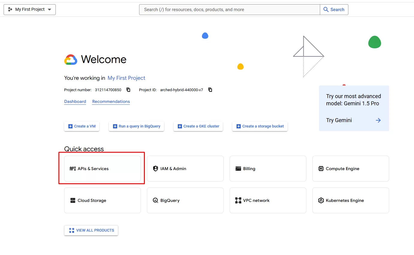 Bước 4: Click chọn APIs & Services
