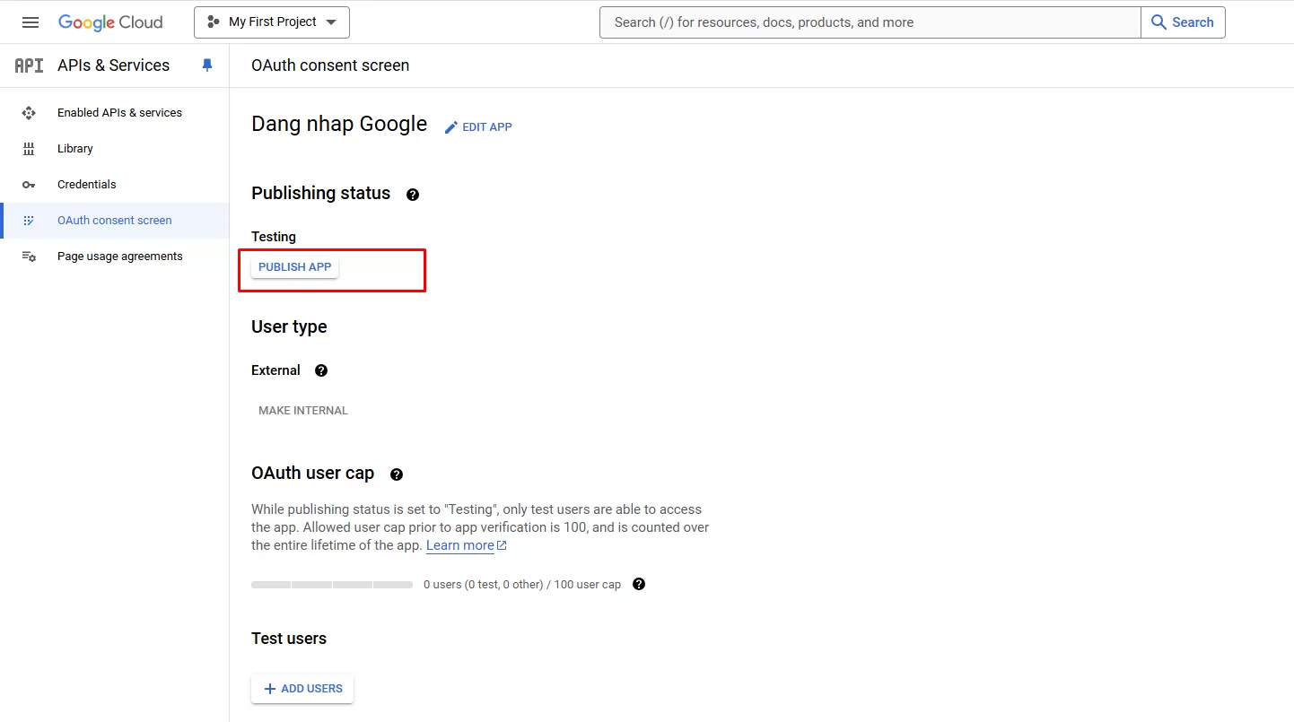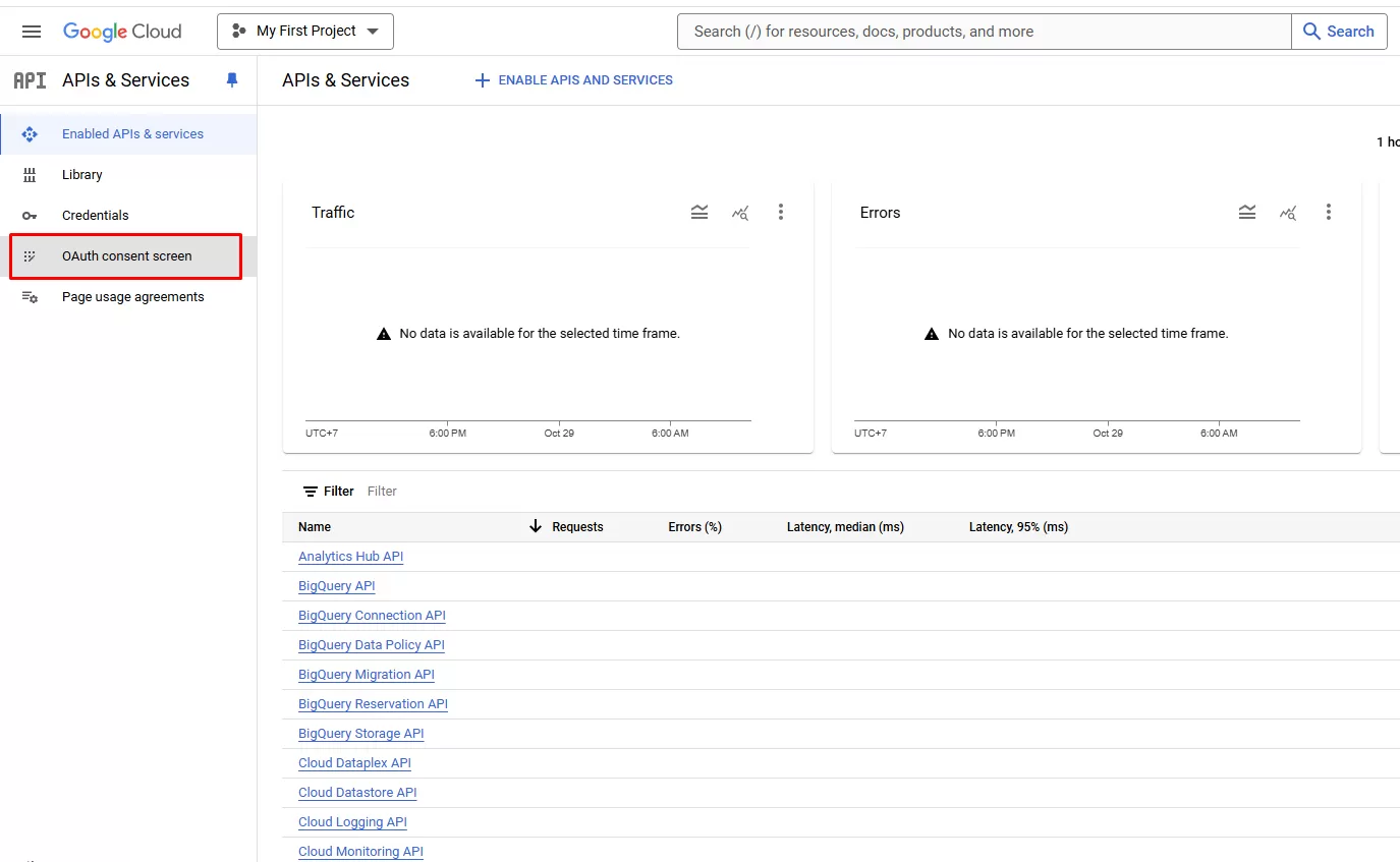 Bước 5: Click chọn OAuth consent screen