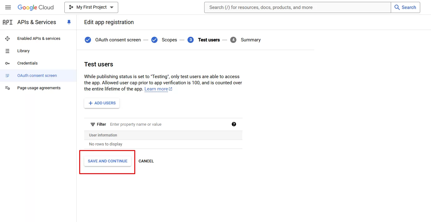 - Click SAVE AND CONTINUE