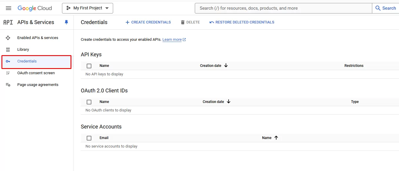 Bước 6: Click chọn Credentials