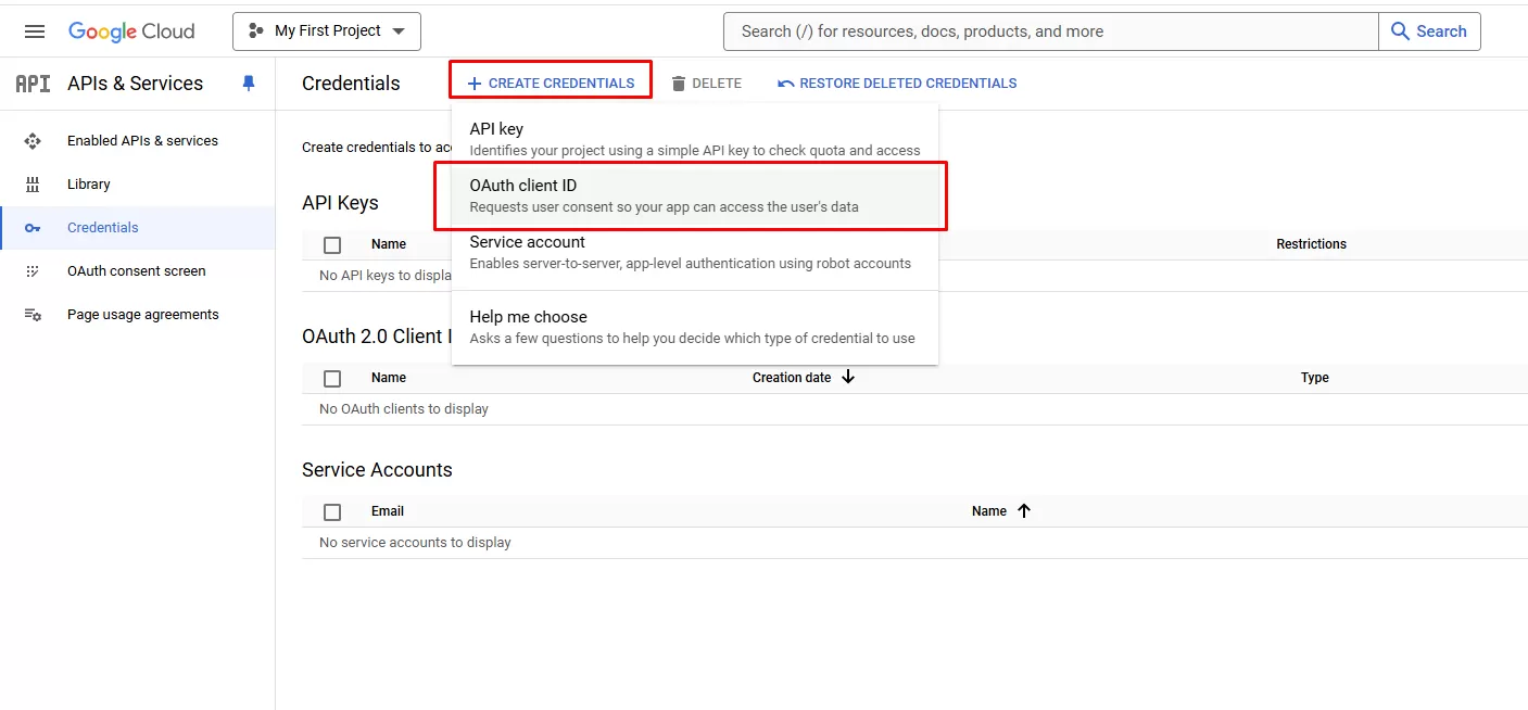 - Tại màn hình Credentials click chọn OAuth client ID
