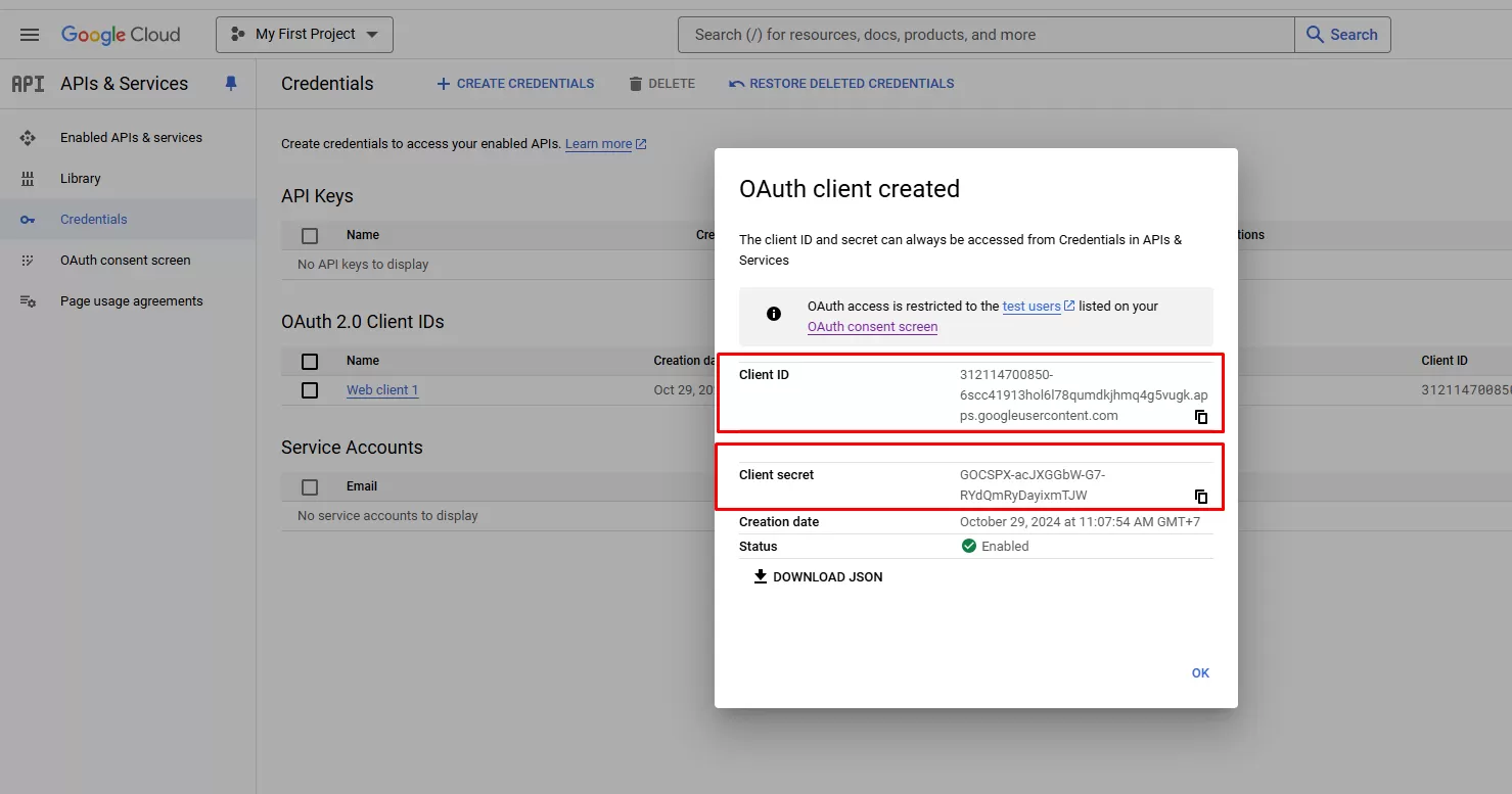 - Copy 2 mã Client ID và Client secret