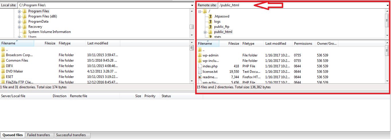 - Nếu không có lỗi gì thì chương trình sẽ kết nối được với tài khoản FTP của máy trạm và các tập tin sẽ được hiển thị trong cửa sổ quản lý tập tin của máy trạm Host.
