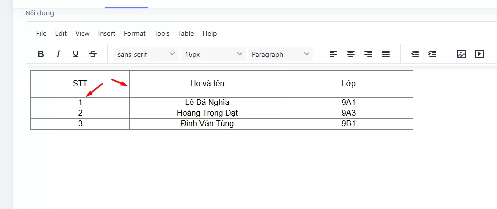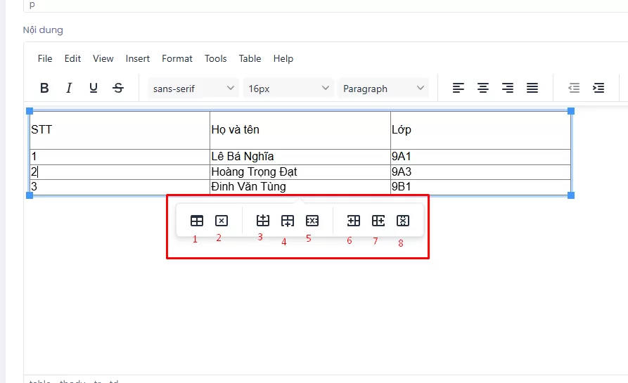 - Sau khi hoàn tất chỉnh sửa, kiểm tra lại hiển thị trên giao diện ngoài website để đảm bảo bảng không bị vỡ bố cục.