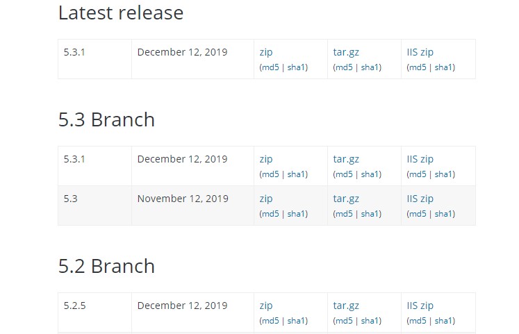 Đầu tiên, bạn cần thông tin của các phiên bản WordPress đã phát hành trước đó, bạn có thể xem tại đây. Bạn có thể hạ xuống bất kỳ phiên bản nào, tuy nhiên bạn chỉ nên hạ xuống phiên bản gần nhất với bản cập nhật bởi vì một số phiên bản cũ sẽ tồn tại những rủi ro về bảo mật có thể khiến cho trang web của bạn gặp rắc rối.