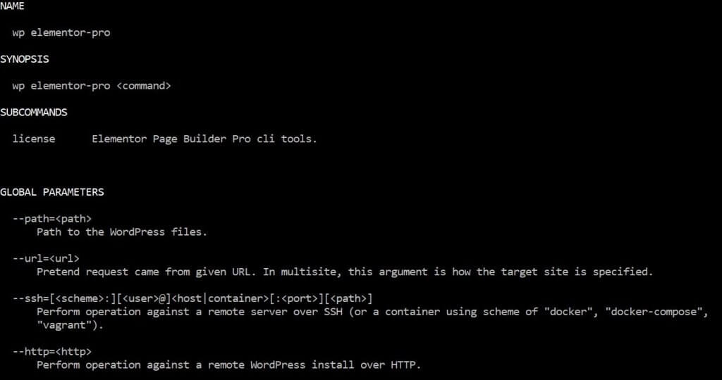 - Để nhận trợ giúp cho một lệnh riêng lẻ, bạn có thể sử dụng một trong hai định dạng sau: WP Help Elementor hoặc là WP Help Elementor-Pro .