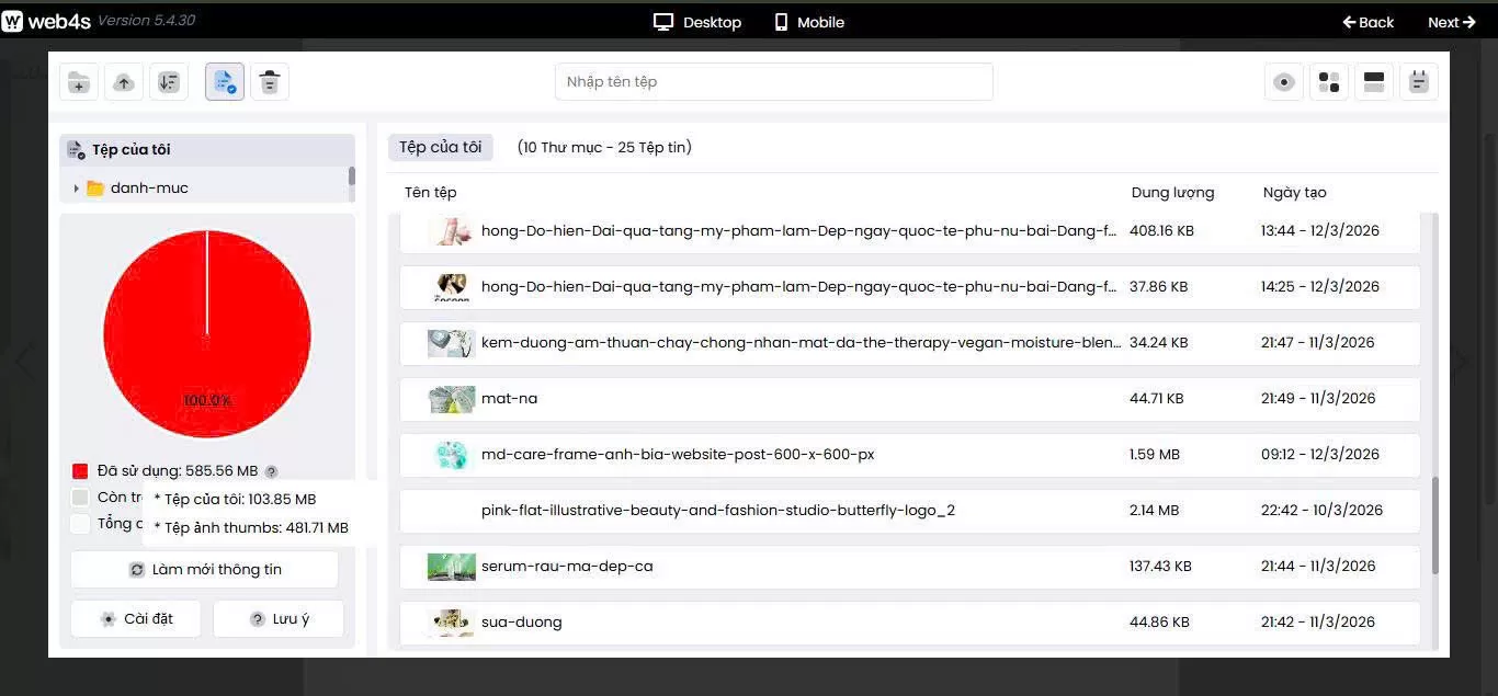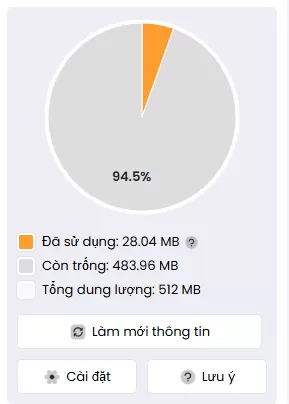 - Sau khi đã check lại dung lượng sẽ có thể upload thêm dữ liệu mới.