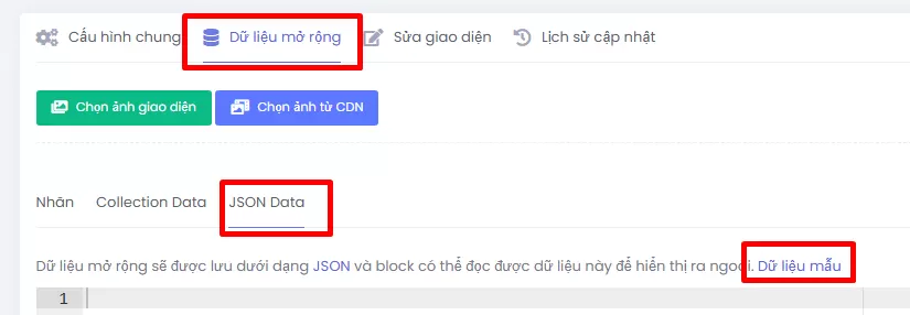- Mở Dữ liệu mở rộng → JSON Data → Dữ liệu mẫu