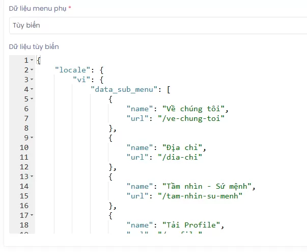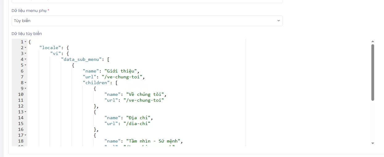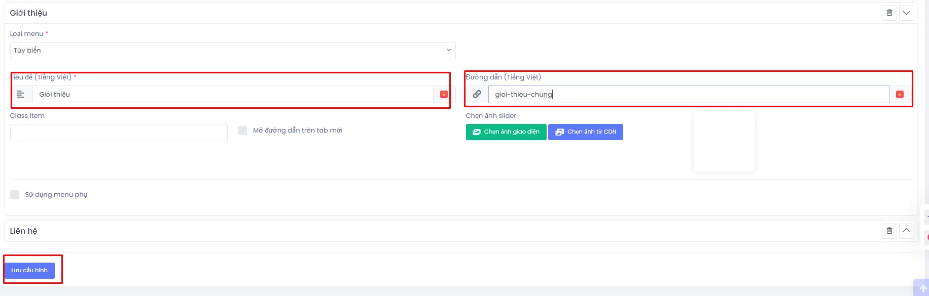 Nếu cần menu đặc biệt hoặc nhiều cấp, vui lòng liên hệ bộ phận kỹ thuật để được hỗ trợ.