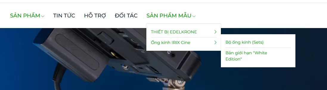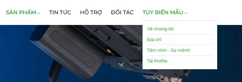 Giao diện menu phụ Dropdown: theo cấu trúc thả xuống phân tầng theo cấu trúc danh mục.