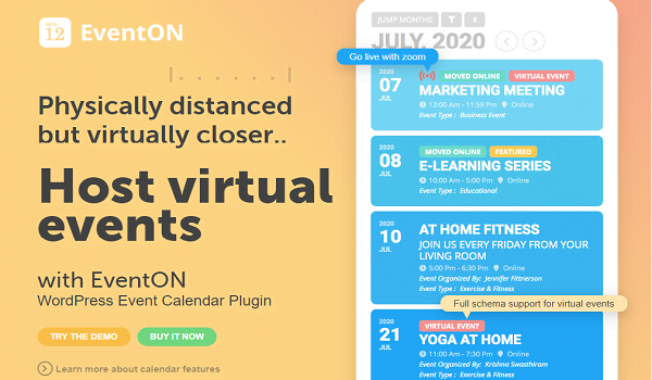 EventOn là Plugin hỗ trợ tạo sự kiện cao cấp kết hợp với WooCommerce và diễn đàn hỗ trợ. Cho đến nay, Plugin này đã có hơn 33.000 lượt cài đặt.