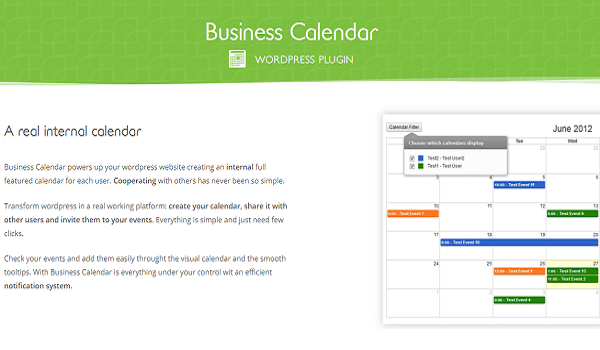 Business Calendar giúp chuyển đổi WordPress sang một nền tảng làm việc thực sự chuyên nghiệp. Bằng cách tạo lịch sự kiện của bạn, chia sẻ nó với những người dùng khác và mời họ tham gia.
