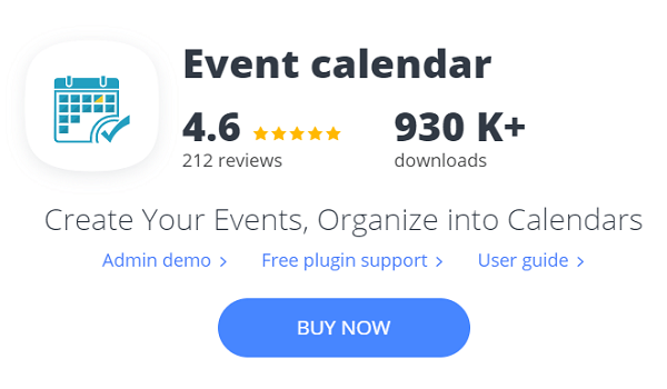 Event Calendar WD là một Plugin có cả bản miễn phí và cao cấp (có giá từ 25$). Plugin tạo sự kiện WordPress này được đánh giá tốt với xếp hạng 4,6 sao trên hơn 184 bài đánh giá. Vì chỉ hoạt động trên hơn 30.000 trang Web nên nó không phổ biến bằng The Events Calendar.