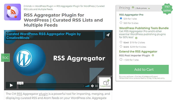 WP RSS Aggregator cung cấp đầy đủ các dịch vụ với giá 80$ cho một trang Web. Hoặc bạn có thể lựa chọn phiên bản mở rộng có giá 300$ cho tối đa 20 trang Web.