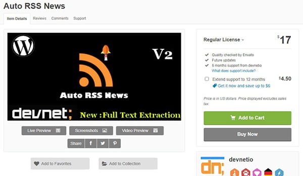 Bạn có thể sử dụng rất nhiều tính năng của Auto RSS News với giá 17$ cho 6 tháng hỗ trợ. Nếu muốn mở rộng hỗ trợ lên 12 tháng, bạn phải tả thêm 4.5$.