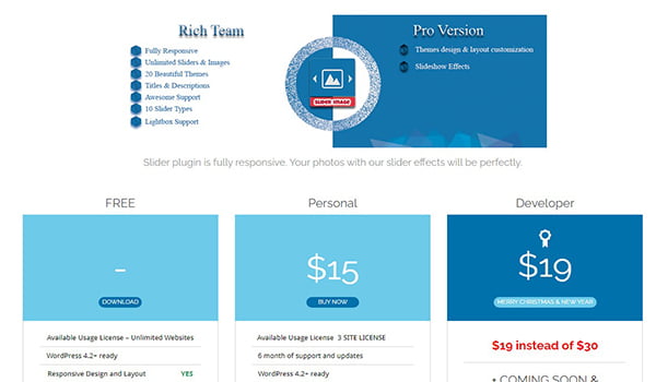 Phiên bản miễn phí của Slider WD cũng được đánh giá cao. Tuy nhiên tùy vào nhu cầu, bạn có thể nâng cấp lên phiên bản khác:
