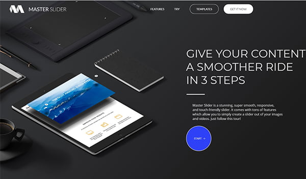 Master Slider là Plugin tạo Slider 3D tốt nhất với hơn 100.000 lượt cài đặt đang hoạt động. Các bản trình chiếu tạo bởi Plugin được hiển thị một cách thu hút với màu sắc bắt mắt, chuyên nghiệp, hiệu ứng chuyển tiếp mượt mà.